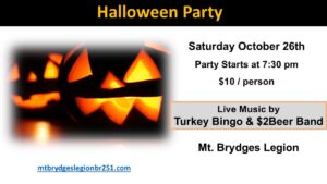 Get your costume on and come out and just party! Prizes and some surprises. Music by Turkey Bingo & $2Beer Band. Always a good time to just let go.