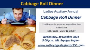 The best cabbage rolls in town. Tickets always go fast for this event. Bring your friends and family out for a fantastic dinner and to meet new people. Always fun.
