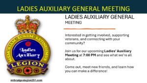Join us on Monday, November 3rd at 7:00 PM for our Ladies’ Auxiliary Meeting. Come out, learn more, meet new friends, and be part of something meaningful! The Ladies’ Auxiliary is always looking for members who want to support veterans and strengthen our community. Your time and energy can make a difference, even in small […]