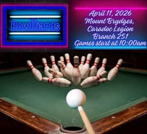 Join us for Bowlliards! April 11th 9:00–3:00! Everyone is welcome for a fun-filled day of games and camaraderie. For more info, call our Sports Officer Adam at 519-675-8733.